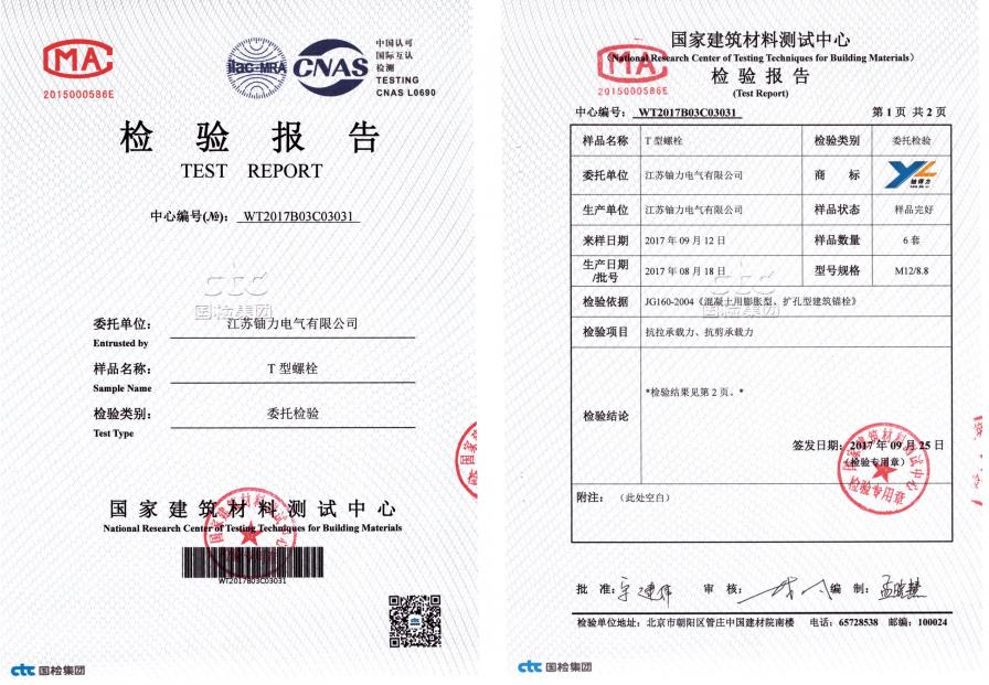 T型螺栓--檢驗報告